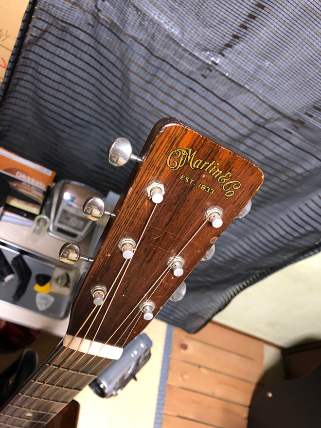 ロングサドル、丸っこくてスマートなヘッド、オープンバックのスモールペグ、塗り込みのトーティスピックガード…この頃のマーティンっていいよねぇ。これはベアクローも出ているのかな?…あ、ヨダレ出た。(JMN統括編集長 烏丸)