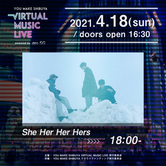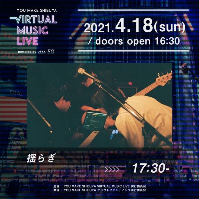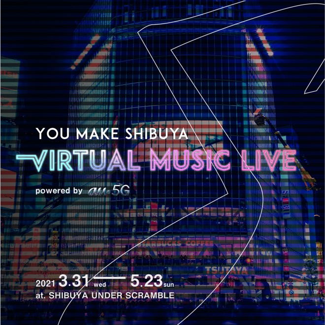 <YOU MAKE SHIBUYA VIRTUAL MUSIC LIVE powered by au 5G>は、2021年3月31日および2021年4月16日以降の合計20日間にわたって開催されるイベントだ。新型コロナウイルス感染拡大によって影響を受けたエンターテインメント/ファッション界など渋谷文化を支える業界を支援する“YOU MAKE SHIBUYA クラウドファンディング”の一環であり、コロナ禍において活動が制限されているアーティストに表現と発信の場を提供することを目的としたものとなる。