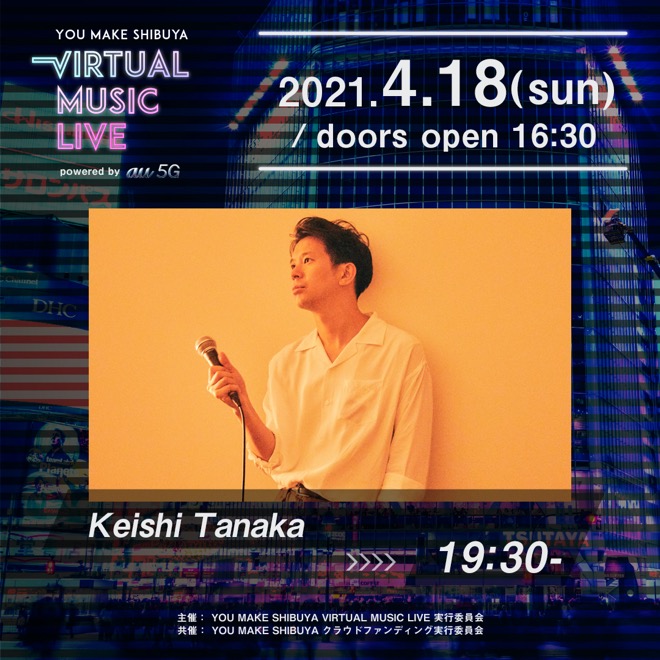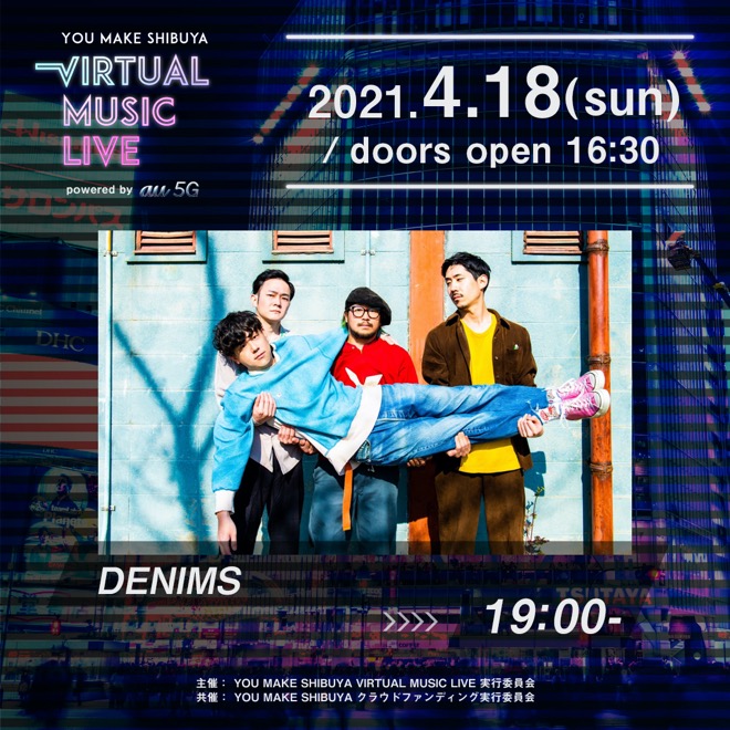 渋谷区公認の配信プラットフォーム“バーチャル渋谷”内に誕生したバーチャルライブハウス“SHIBUYA UNDER SCRAMBLE”にて4月18日(日)、イベント<YOU MAKE SHIBUYA VIRTUAL MUSIC LIVE powered by au 5G>が開催される。同イベントにはKeishi Tanaka、DENIMS、The fin.、She Her Her Hers、揺らぎ、gatoの6組が出演、バーチャルイベントとして実施されるものだ。