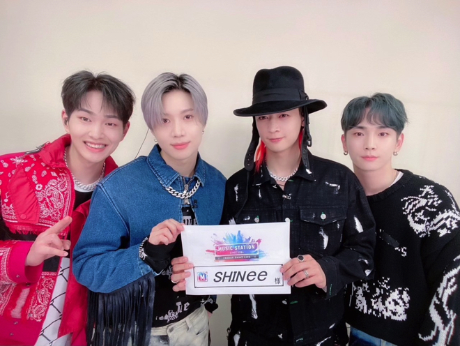 SHINeeが『ミュージックステーション』に出演するのは、2011年9月9日に「JULIETTE」で出演した以来で、9年7か月ぶり。スタジオでのパフォーマンスは叶わなかったものの、オンユ、キー、ミンホ、テミンは韓国からの生中継で登場した。