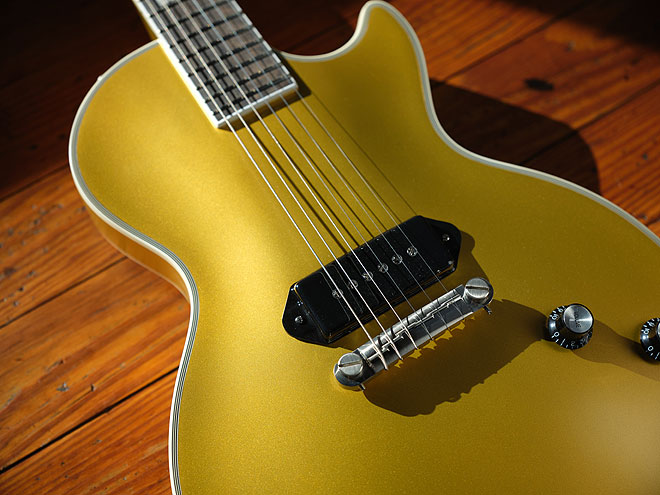 1955年スタイルのレスポール・カスタムのボディにSeymour Duncan P-90ピックアップを1基のみ搭載し、ダブルゴールド・エイジド・フィニッシュで仕上げられている。さらに伝統的なブロック・インレイが施されたエボニー指板、Grover製ロトマチック・マシンヘッドが搭載され、EpiLiteケースが付属する。