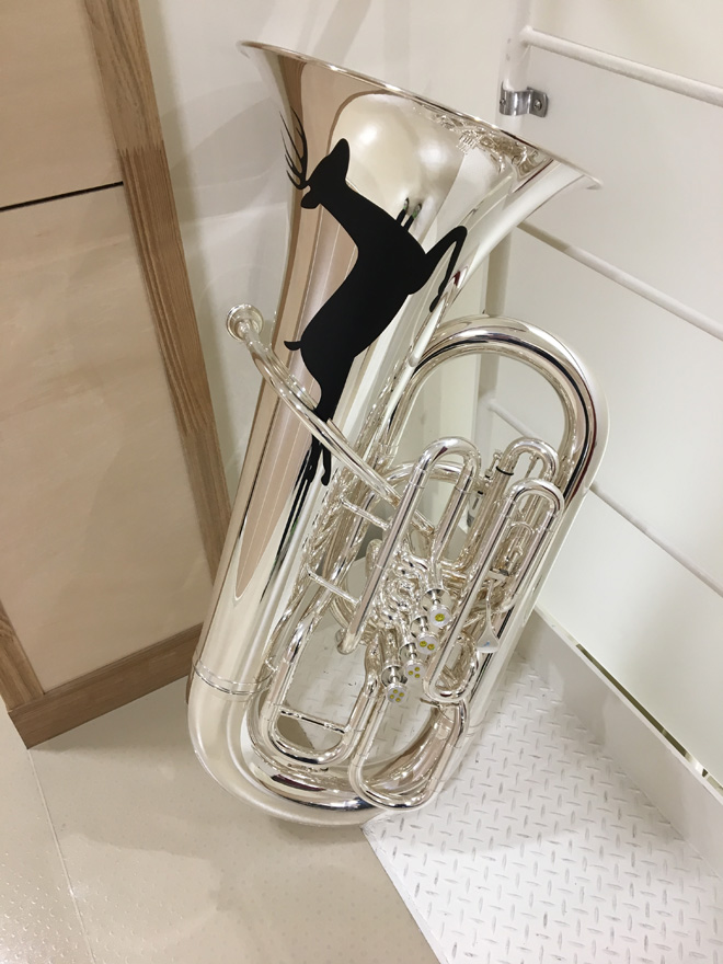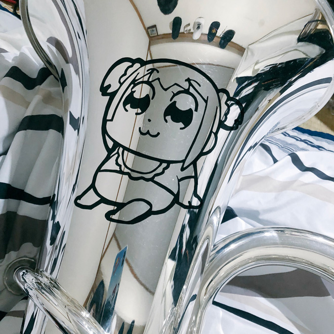 チューバ吹きなら一度は合奏中、「このデカすぎる楽器、ペイントしたりステッカー貼ったら楽しいだろうな……」と妄想するのですが、実際にやろうとなると粘着剤処理が頭に浮かび、なかなか実行できません(諸外国ではゴリゴリに色塗ったりしてます)。ですが実際に写真を見ると、ウズウズしちゃいますね。楽器タトゥーシール、商機を感じます。