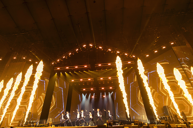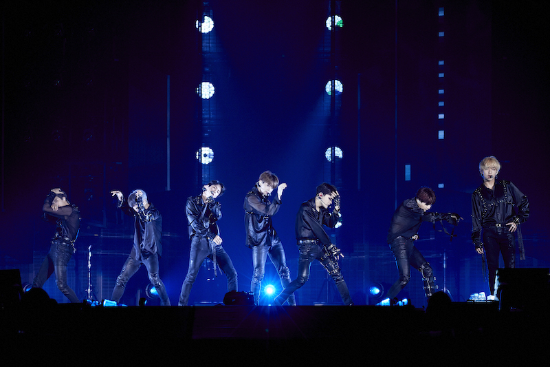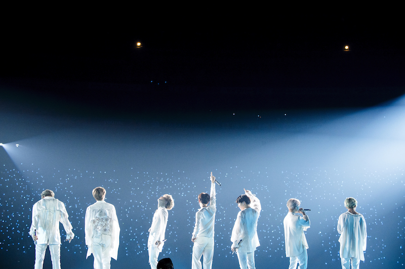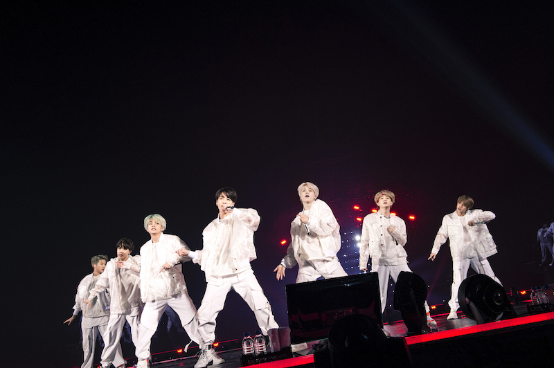 <LOVE YOURSELF>の日本公演はすべてドームで開催され、BTSが行った日本のライブでは初のドームツアーとなった。東京ドームでライブをするという日本デビュー当時からの夢を叶えた喜びからか、冒頭の挨拶で「とーきょードームー!」と声をあげるメンバーたちに、会場中のARMYが歓声で応える。本ツアーで絶対に見逃さないようにしたいのが、中盤で披露するVのソロ曲「Singularity」と「FAKE LOVE」。YouTubeで公開されている「Singularity」のComeback Trailerと同じように、コートハンガーや仮面を使ったダンスで妖艶かつミステリアスな雰囲気を再現したV。そしてそのムードをいかしてスタートした「FAKE LOVE」では、ロックなアレンジのカッコよさもさることながら、サビで必ずJUNG KOOKの鍛え上げられた腹筋を拝むことができる、ファンにはたまらない一曲だ。MCでは無線コントロールで光らせることが可能なARMY BOMBを使い、JINの投げキスに合わせて客席中にハートが浮かび上がらせる。彼らの遊び心も随所に散りばめられたステージだった。