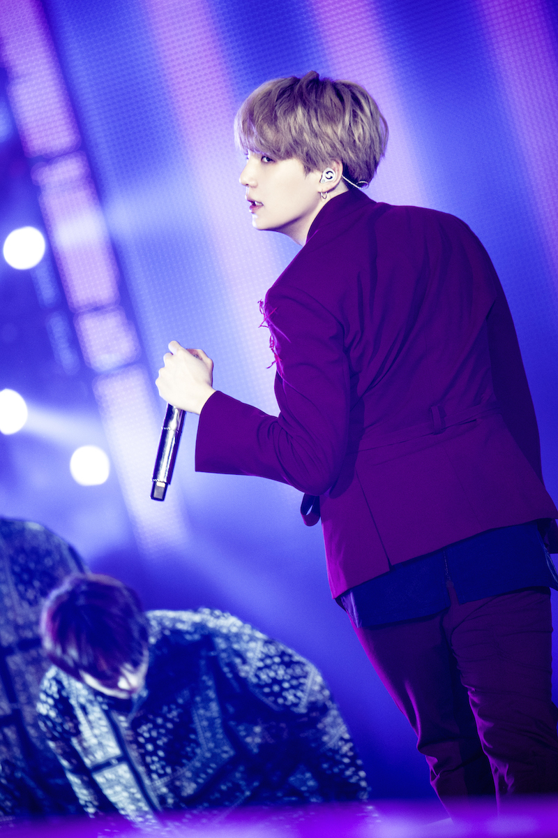 ダークトーンでナチュラルな髪色が多かったJUNG KOOKのピンクヘアがまぶしいソウル公演は、韓国国内最大級のソウル オリンピック主競技場で行われた。栄えある1曲目は「IDOL」。「You can’t stop me lovin’ my self」というフレーズに、トラディショナルなメロディで、<LOVE YOURSELF>というワールドツアーの幕開けにふさわしい一曲だ。さらに注目したいのは、ヒットソングメドレー。バンドアレンジの効いた名曲たちはライブならでは。また、JINはこの日のために練習してきたピアノの弾き語りを「Epiphany」で披露。ソロ曲のステージも確実にレベルアップしていることが見てとれる。さらに、JIMINは新しいカメラを用意したようで、ARMY BOMBが虹色に輝く客席、そしてより大きくなったステージセットをバックに7人で記念撮影をし、この日の思い出を写真に収めていた。