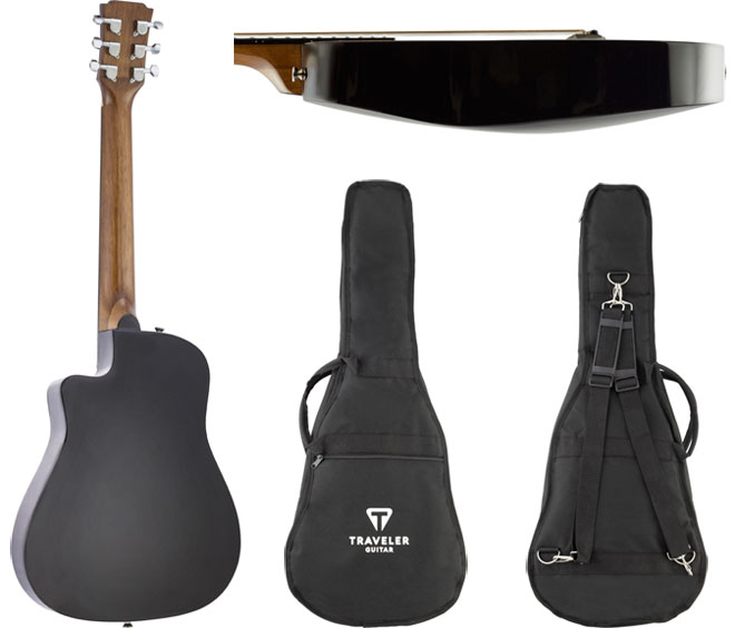 サイド&バックはバスウッド、ネックにはナトー、フィンガーボードにはブラックウッドを採用。ポジションマークはシンプルなドットで、12フレット位置にはトラベラー・ギターののロゴ・インレイを配している。