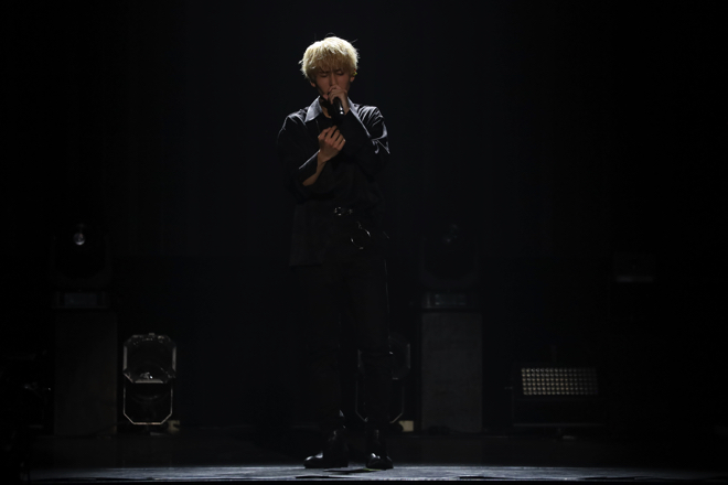 ステージが暗転し、しとしとと雨音が響き渡る。ステージにはメインボーカルの浦野がひとりで現れ、しっとりとした「Scattered」の歌い出しパートをアカペラで披露。伸びやかな歌声とともに、本人の緊張までもが客席に伝わってきたが、浦野が歌い上げると、客席からは自然と拍手が巻き起こり、ミドルバラード「Scattered」から大人のラブソング「Beautiful」までを連続パフォーマンス。