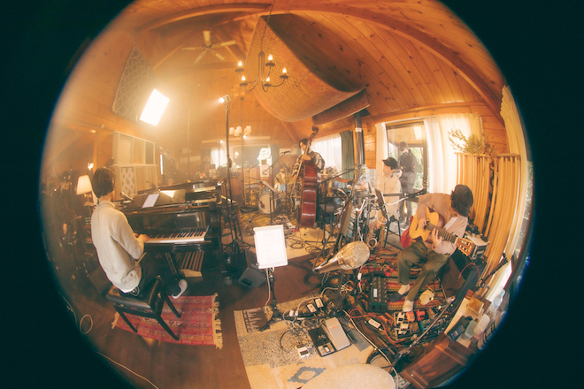 今回ライブが行なわれたのは、都心から離れた場所にある大橋トリオのプライベートスタジオ。THE CHARM PARK(G/Cho)、神谷洵平(Dr)、須長和広(B)、小林創(Key/P)、武嶋聡(Sax)と共にセッションを行いながら、オリジナルライブを作り上げた。