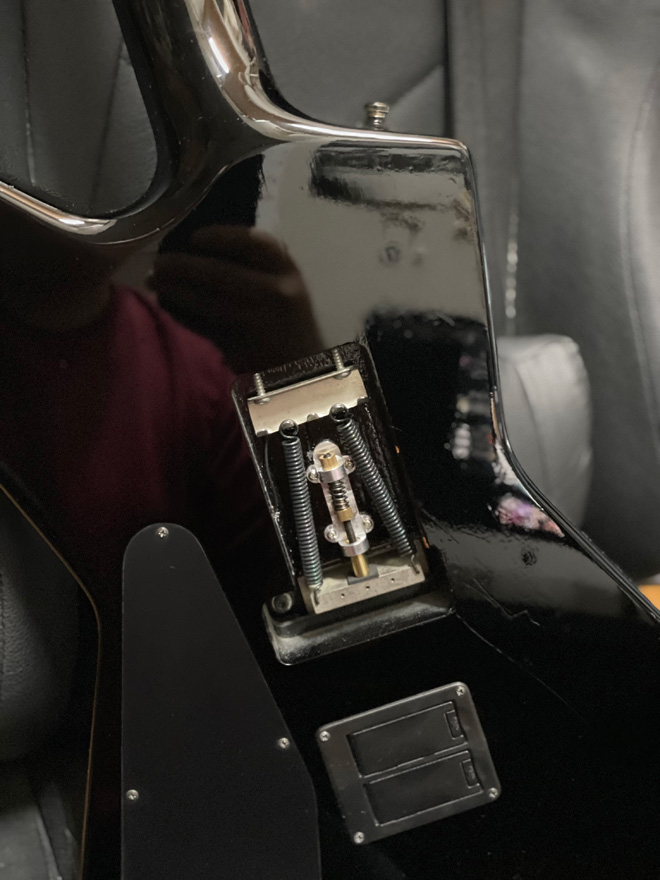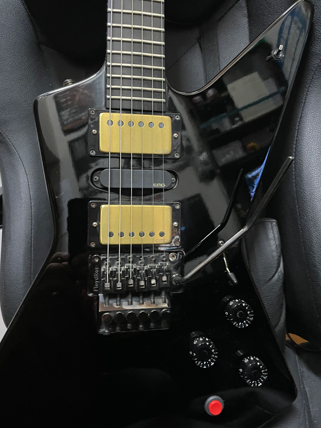 以前からエクスプローラータイプが欲しかったのですが、どうしてもミディアムスケール、22F、2ハムのものしか見つからず、さらにあフロイドローズ搭載のモデルにも憧れがあり。