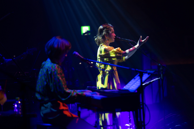「みんなの顔が見えた瞬間に泣きそうでした」とこじまが語るように、観客は声を出せないものの、会場内は終始アットホームな雰囲気に包まれ、雨模様の外の天気とは裏腹に、二人のピアノと声が横浜の空に優しく響いた。