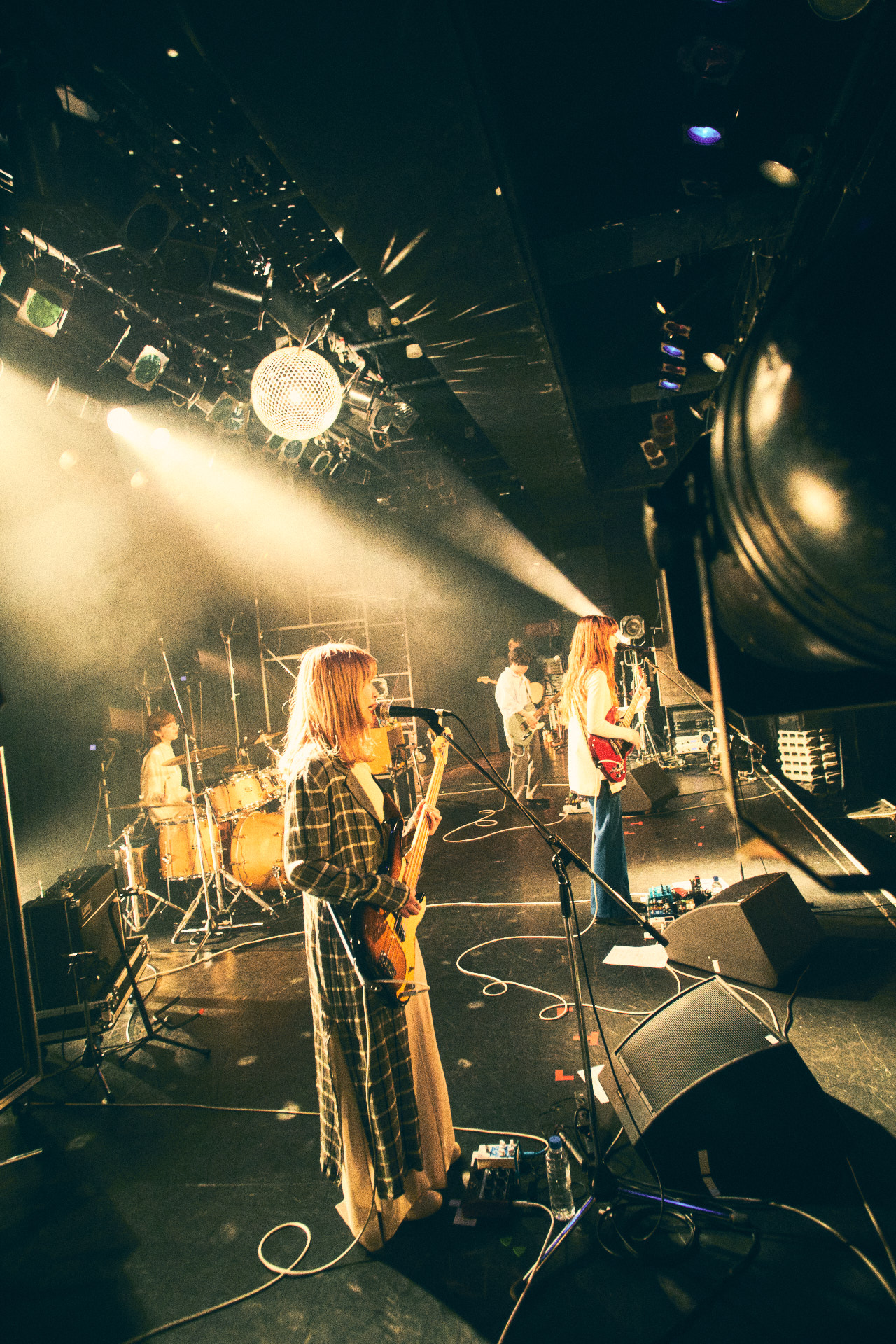 澄み渡る青空を想起させる「Hull Down」のあと、5月にリリースされるメジャーデビューアルバム『Moving Days』収録曲であり、イベントのタイトルでもある新曲の「Here」を披露する。穏やかさのなかに力強さを宿した楽曲で、心地のいい緊迫感は春の肌寒い夜明けのよう。4人の音楽への美学や、覚悟にも似た真摯な心情が伝わってきた。そこから幻想的で繊細なタッチのインタールードを挟み、ラストは「Blue Hour」。静かに燃え上がるような迷いのない演奏は、バンドがこれまでに積み重ねてきた道程を感じさせた。
