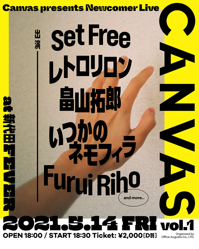 <CANVAS>は、オフィスオーガスタのスタッフが独自の視点でピックアップしたアーティストたちが出演するニューカマーイベント。今回の発表では、いつかのネモフィラとFurui Rihoの2組の出演が明らかになった。