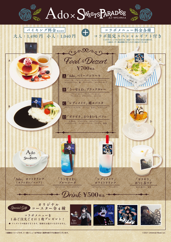 スイーツパラダイス限定グッズ:コラボカフェにて、スイパラ限定“Ado”コラボグッズを販売
