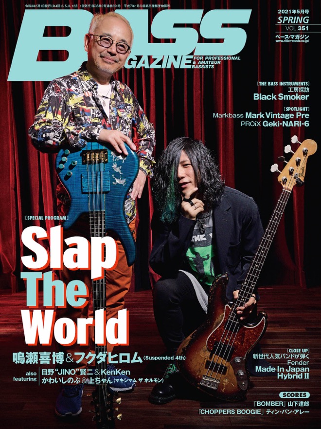 なお、Suspended 4thのフクダヒロム(B)は、ベースマガジン2021年5月号 -Spring-の表紙に初登場。鳴瀬喜博(カシオペア・サード)との世代を超えたスラッパー対談が実現している。