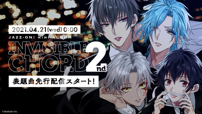 男子高校生が奏でる青春ストーリー“JAZZ-ON!”のミニアルバム『Invisible Chord 2nd』が5月5日にリリースされる。同作の収録曲で、武宮大和(CV:駒田航)、依吹青(CV:土岐隼一)、九鬼暁(CV:神尾晋一郎)、星乃レイ(CV:ランズベリー・アーサー)が歌う表題曲「Invisible Chord 2nd」の先行配信がスタートした。