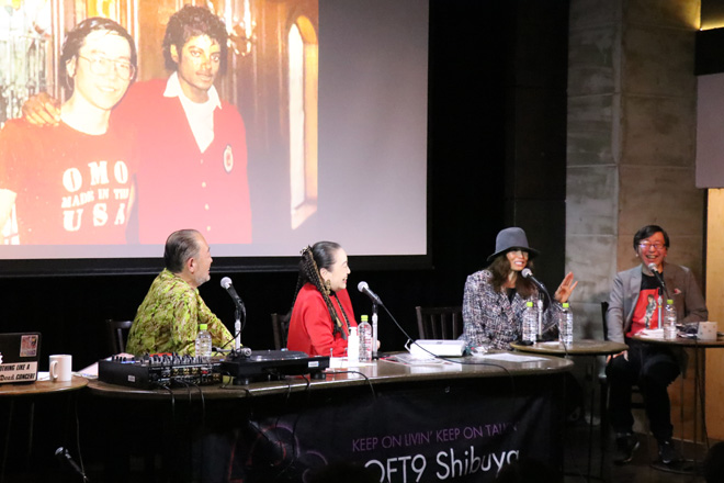 1月に予定されていたVol.2が3月28日にLOFT9 Shibuyaで開催された。マイケル・ジャクソンPT2!れい子先生のマイケルへの大きなLOVEに包まれたメッセージでスタート。今回はマイケル1992〜93年デンジャラス・ワールド・ツアーでダンサーとして活躍した熊本県出身のユーコ・スミダ・ジャクソンさんをお招きして、マイケルの魅力&素晴らしさをじっくりと語っていただいた。