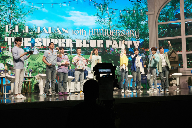 SUPER JUNIORが4月25日、日本ファンクラブ「E.L.F.JAPAN」10周年を記念したオンラインファンミーティング<E.L.F-JAPAN 10th Anniversary 〜The SUPER Blue Party〜>をBeyond LIVE、LINE LIVE-VIEWINGを通じて生配信した。