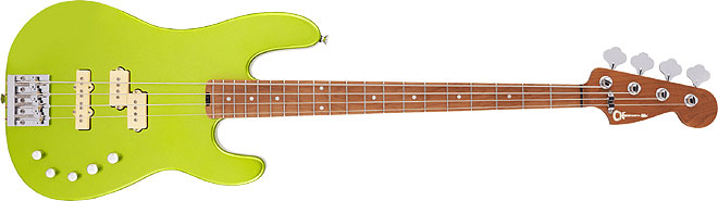 アルダーボディと深いカッタウェイを備えた4弦ベース。極薄のボルトオンメイプルCharvelネックは70年代San Dimasベースのオリジナルのスタイルを踏襲しており、キャラメル加工、グラファイト補強、調整が容易なヒールマウントトラスロッドホイールを採用している。