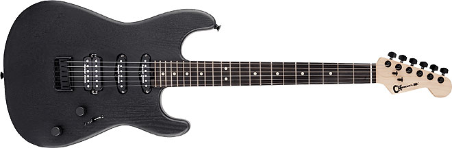 Satin Blackとブラック・ハードウェアといったスタイリッシュな雰囲気をまとった、サッサフラスボディのモデル。ダイレクトマウントされたHSS構成のピックアップやコントロールは上記2機種と同様だが、こちらはトレモロブリッジを搭載しないハードテイル仕様。正確なイントネーションとサスティンを向上させるCharvel HT6ストリングススルーボディブリッジを搭載する。