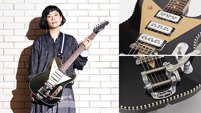 フラッグシップとなる「V1 BLACK」は、トリプルピックアップ。セレクターは5ポジションのスイッチングに加え、プルポットを採用し、7色の音(レインボートーン)を奏でることができる。