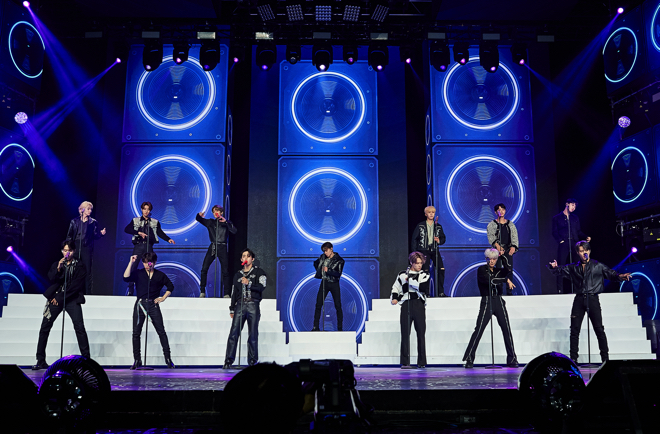 シックな光沢のあるブラックの衣装で登場し「24H」でスタート。続いてオープニングトークを挟み、ミンギュが「今回のために準備した特別バージョン」だと紹介した「CLAP~BOOM BOOM~Mansae」のヒットメドレーへ。「CLAP」はスタンドマイクを使い、合間合間にメンバーたちの生の掛け声が入るロックバージョン。そのまま「BOOM BOOM」に入ると、ウォヌのパートで「今!話して!」と日本語が飛び出し、ホシの「行くよ!」の掛け声からバリバリのダンスへ。「Mansae」もアレンジされたリミックスバージョンで披露するというスペシャルなステージにMCの古家正亨は「同じ楽曲でもライブごとに違った印象を与えるのがすごい」と大絶賛。