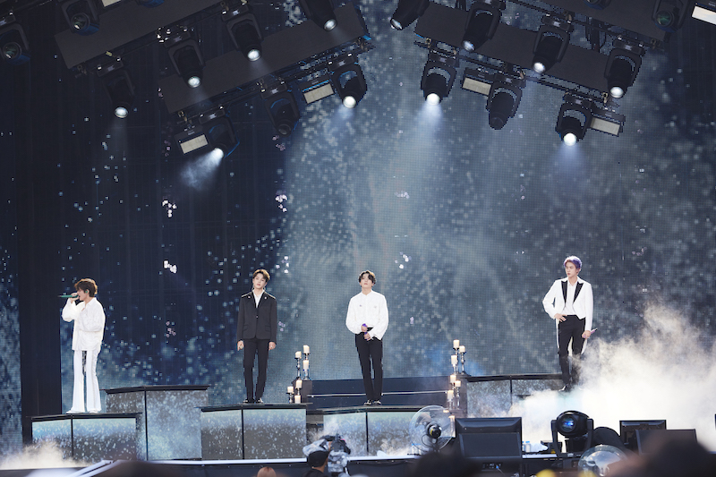 よりスタイリッシュになった相棒のピアノと一緒に登壇したJINの「Epiphany」では、彼の力強くも美しい高音が聴く者の胸を打つ。そのままステージに立つJINの元にJIMIN、V、JUNG KOOKたちが集い歌唱する「The Truth Untold」は、声色の違う4人が紡ぎだすハーモニーに心が洗われるようだ。最後に披露した「Mikrokosmos」ではトロッコに乗ってアリーナをぐるっと回りながら会場中のARMYに手を振り、3時間弱に及ぶライブを締めくくった。