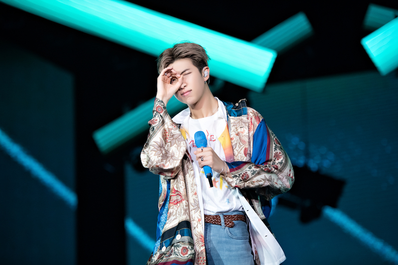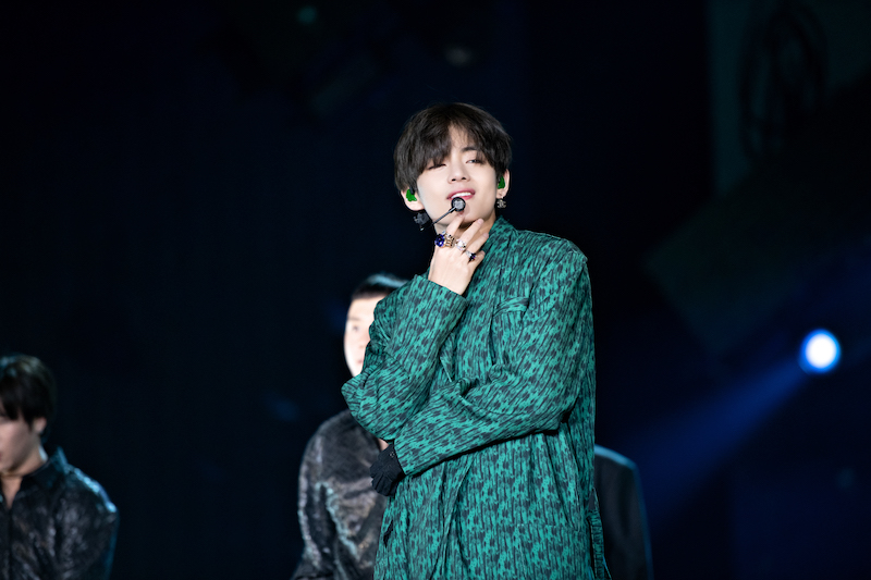 ロングコートを颯爽と翻しながらステージで圧倒的存在感を放つRMは、「Trivia 承 : Love」を歌唱しながら光のハートを何度も空中に浮かび上がらせる。Vの「Singularity」はベッドを模したセットに横たわった状態からスタート。モニターに映し出される彼の妖艶な姿に、割れんばかりの歓声が沸き起っていた。