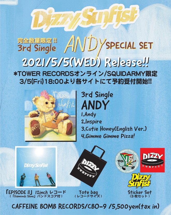 Dizzy Sunfist、ニューSG SPECIAL SET発売日に「Andy」MVプレミア公開&特番配信決定