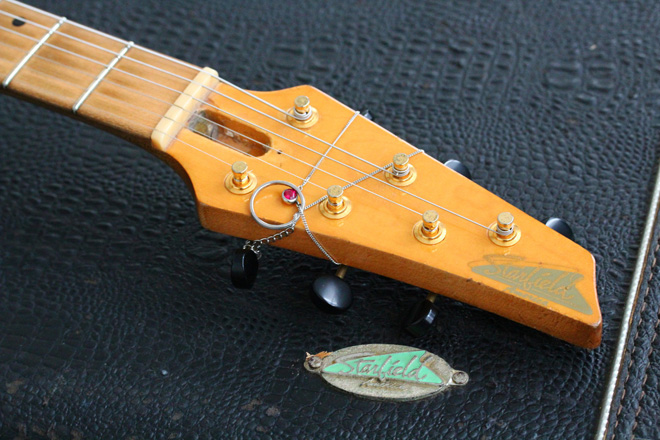 高校卒業時に新品購入した、今ではほぼ幻の「Starfield」です。昔ならともかく、さすがにここ20年ほど、同じのを弾いているプレイヤーに遭遇したことがありません。商社(星野楽器)とメーカー(フジゲン)に何軒かの楽器店を加えたチームで企画したブランドだったそうで、ブランド名はそのまんま、星(star)野(field)です。