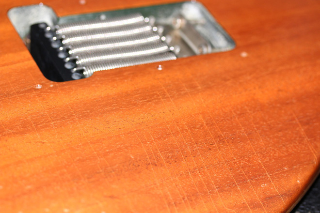 調整やパーツ交換を経るたびにこのギターは成長し続け、私は時と共に横へと成長していきました。塗装もフレットも替えているし、ナットや電気回路は何回交換したかわかりません。今やオリジナルはネックとボディ、フロントピックアップ、トーンノブだけです。塗装もヘッド面しか残っていません。オイルフィニッシュの指板がほぼ均一に汚れているのは、ちょっとした自慢です。