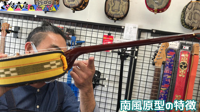 「楽器人(がっきんちゅ)」映像第2弾では、沖縄県読谷村にある三線工房まちだ屋から「三線」を深堀りするというもの。蛇の本革と人工革…さて、本革を使った三線の音はどっち?