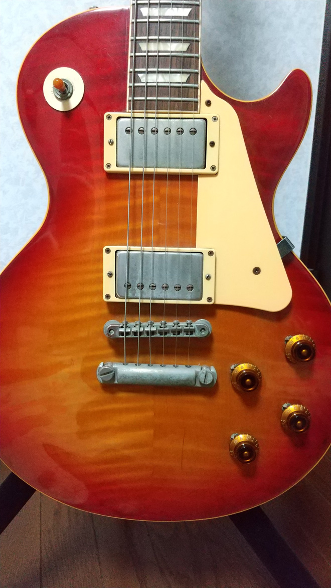16歳の時に友達から買ったギターに物足りなさを感じて、これからずっと愛用していけるギターを探そうと思い18歳の時、京都三条の楽器店に友達と行き、このギターを見つけてフォルムと色合いに一目惚れ。それにちょっとした傷で値段もお安くなっていたので即購入しました。その後も何本か購入しましたがしばらくしたら結局このギターに手が行ってしまいます。やっぱりこのギターが一番しっくりくるのかなって気がします。