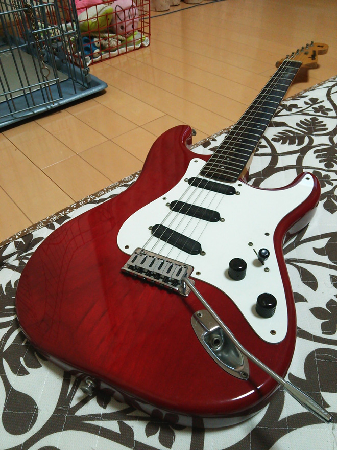 未だ現役感が出てますね。素晴らしい。当時は各パーツも様々なものが出ていて、カスタマイズに余念のない時代でもありました。フレットもジムダン6105に打ち替え、コマはチタンに、スティール製トレモロブロックやバネも交換するという、触れるところは全部触ったものです。006P(9V電池)もたくさん予備を持ち運んでいましたよね。(JMN統括編集長 烏丸)