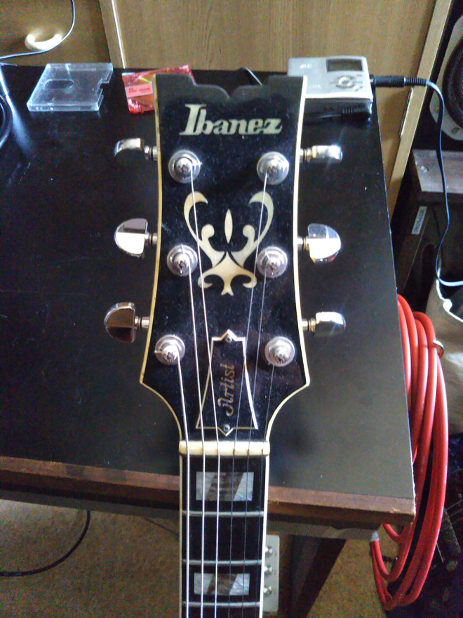 実は親に買ってもらったギターなのですが、高校受験で公立に受かったらパターンで、grecoのgoを買うつもりだったんですが、なんやかっこええやん!って!逆輸入やったとおもいますが…高校卒業してからは全く弾かず押入れに監禁やったんですが、30年ぶりぐらいに出したら糸巻きはボロボロで交換して鳴らしたら、まぁまぁええんです!艶があるかんじピックアップのパワーがハンパない!!メインで使用しているのはストラトなのであまり登場しませんが、脇役としては最高!です。