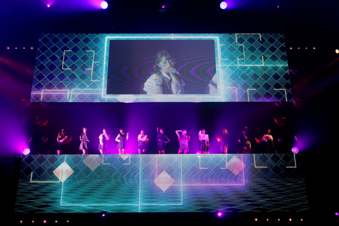 オープニングの「Overture」がかかると、幻想的なシチュエーションの中メンバーがステージに登場し、アルバムリード曲の「桜の咲く⾳がした」を披露。季節感あふれるラブソングの曲中で、衣装が淡い桜色に変化するという春らしい演出で会場を盛り上げた。続いて、音嶋莉沙が初のセンターを務める新曲「cinema」を初披露し、キュートに歌い上げる姿に会場は大きな拍手に包まれた。さらに野口衣織のソロ曲「拝啓 貴方様」を初解禁し、大人なロックナンバーをセクシーに歌い上げ、齊藤なぎさソロ曲「現役アイドルちゅ〜」では、ピンクのフリフリ衣装でアイドルのリアルな心情を歌い、彼女の個性が光るパフォーマンスを見せつけた。