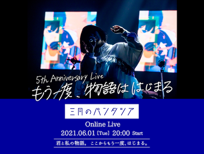 三月のパンタシアがデビュー5周年を記念した無観客オンラインライブ<三月のパンタシア 5th Anniversary Live「もう一度、物語ははじまる」>を6月1日(火)に開催することが決定した。