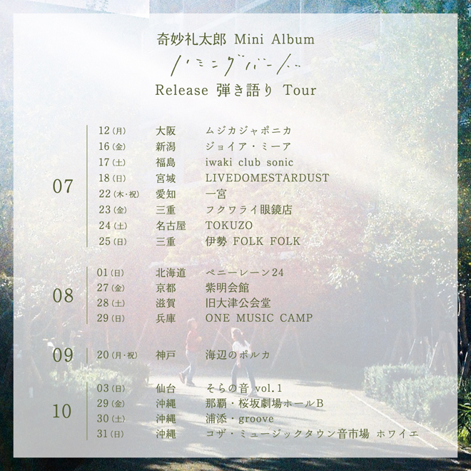 <奇妙礼太郎 Mini Album 「ハミングバード」 Release 弾き語り Tour>