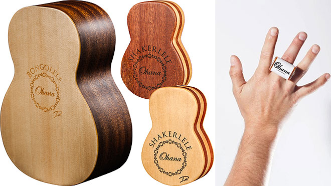 アメリカのウクレレ・ブランド「Ohana Ukuleles(オハナ・ウクレレ)」から、ユニークなパーカッションが登場。グラミー賞受賞アーティストのダニエル・ホーとのコラボレーションによるウクレレ型シェイカー、コンサートサイズのウクレレ型ボンゴ、指に取り付けるフィンガーシェイカーがリリースされた。