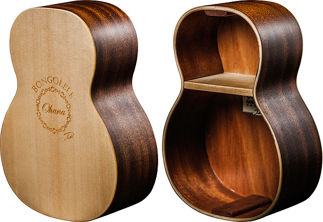 ウクレレのボディの形をしたコンサートサイズのボンゴ。スプルース・トップによるパワフルなパンチ力と明るい音色が、マホガニーサイドとオープンボトムによって増幅。くびれを持つウクレレシェイプと全長275mmのボディにより、1つボディで2つの異なるサウンドを十分な音量で鳴らすことができる。そのサウンドは動画でチェックしてほしい。