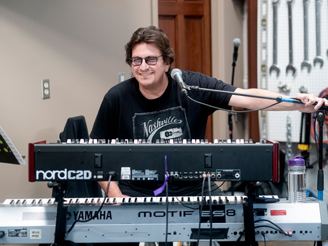 “リフ&変拍子”これでカッコイイ楽曲が出来るんだと閃いたんだ。それからはアランの曲作り、これが僕の作曲のベーシック、基本になってるんだ。あとエドガー・ウィンター・グループのダン・ハートマンだね。ディスコ・シーンで大人気「Instant Replay」はじめ多くの名曲を送り出してる。ロックンロールだけど途中で転調するなどとても複雑な展開をする楽曲作ったり。アランとダンはどことなく共通するところがある。僕みたいなキーボード奏者はギタリストと違ってロジカルに曲を作るのさ。