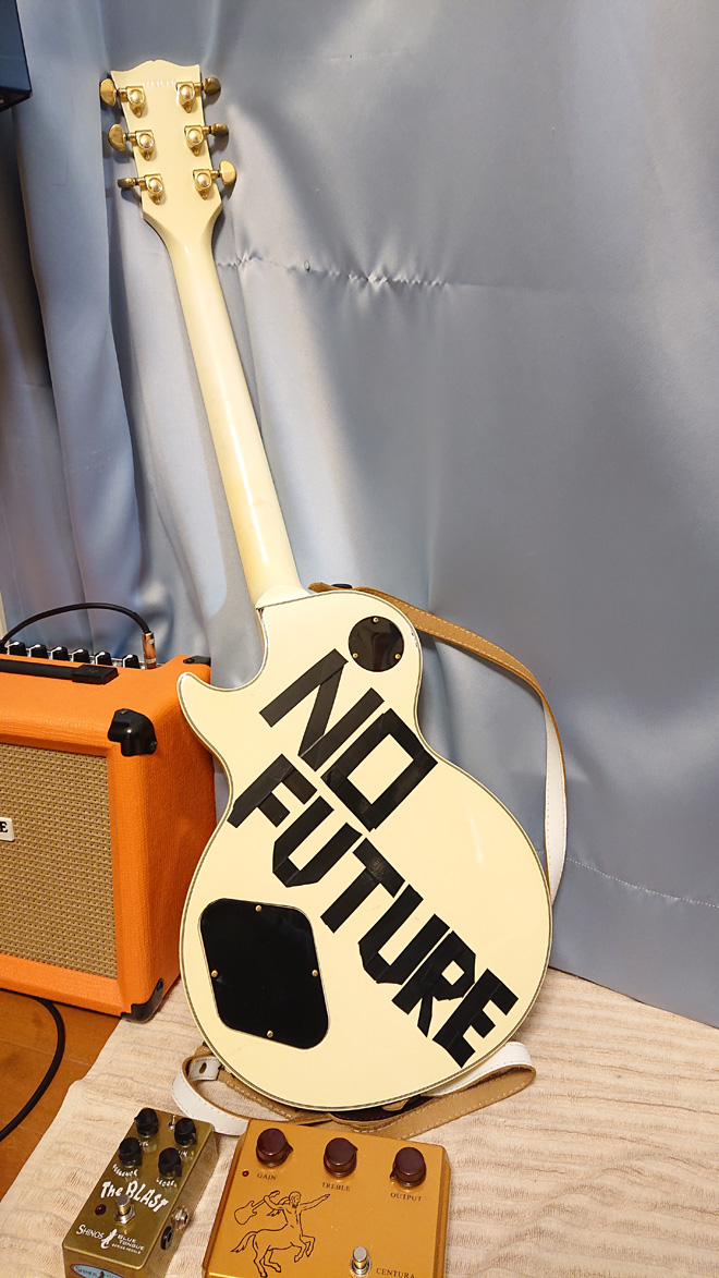 また、裏には、Got Save the Queenでおなじみの「NO FUTURE」の文字を貼り、ノブも’74仕様のソンブレロノブに交換しました。