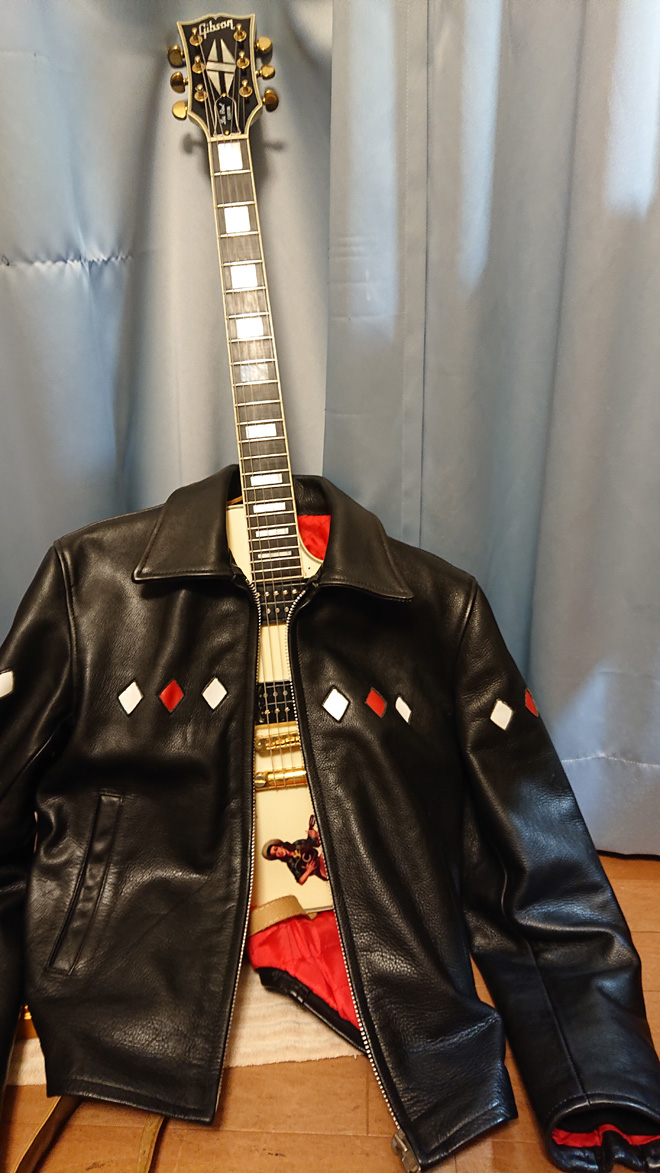 スティーブ・ジョーンズご本人のモデルは1974年のもので、40万円ほどしてしまうので、良い感じに日焼けした1993年製のものを買ってもらいました。