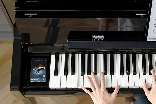 スマートフォンのようにカンタンに操作できるカラー液晶タッチパネルは画面デザインを一新。「最近演奏した音色リスト」や「お気に入りの音色リスト」など、プレイリストのように音色をカンタンに選択できるようになり、今まで以上に使いやすくなった。また、専用のアプリを使えば、スマートフォンやタブレットを使って離れた場所からでもタッチパネルと同様の操作で使うことができる。