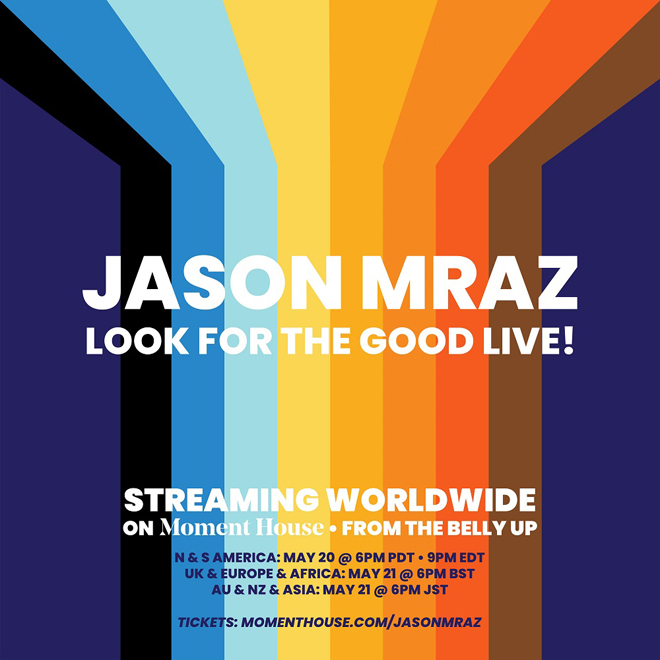 ジェイソン・ムラーズが、全世界に向けた配信ライブ<LOOK FOR THE GOOD LIVE!>を日本時間5月21日(金)に開催する。