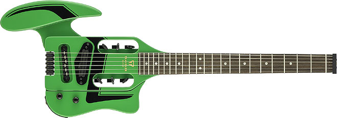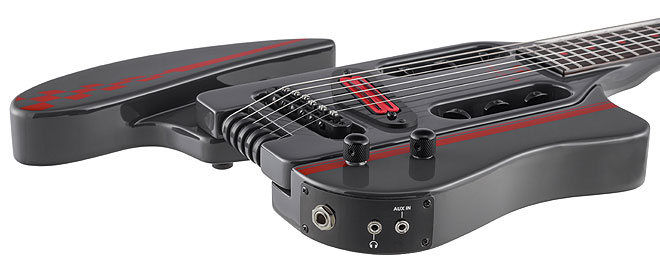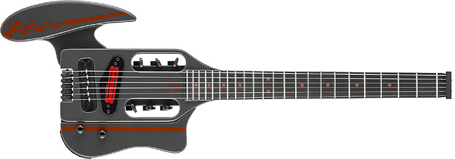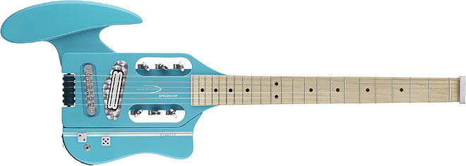 「Speedster Deluxe」は、クリーン/ブースト/オーバードライブ/ディストーションの各チャンネルを備えるカスタムヘッドホンアンプを内蔵したエレクトリックギター。22フレット、24 3/4インチスケール(628mm)を採用しているため、ミニギターと異なり違和感なく演奏することができる。頑丈なネックスルーボディにレトロデザインのアタッチメント(肘当て)が付属しており、取り付けることで演奏性を高め、取り外すことでコンパクトに持ち運ぶことが可能だ。