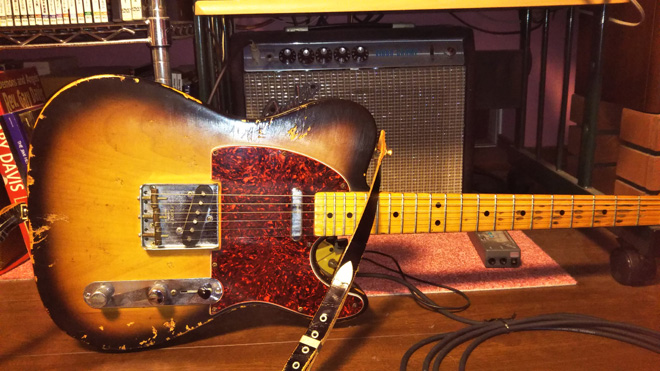 以前、fender1958st & 1955champというやべえブツを投稿してくれたTwang Manさんのサブ機。これがサブで気軽にカスタムできると言っちゃう時点で、何本もネジが外れている楽器人認定です。この頃のテレキャスと銀パネ・バイブロチャンプなら、ギラギラしながらもパンチのある音が出そう。音聞きたいなぁ。(JMN統括編集長 烏丸)