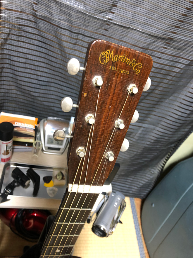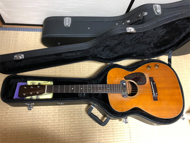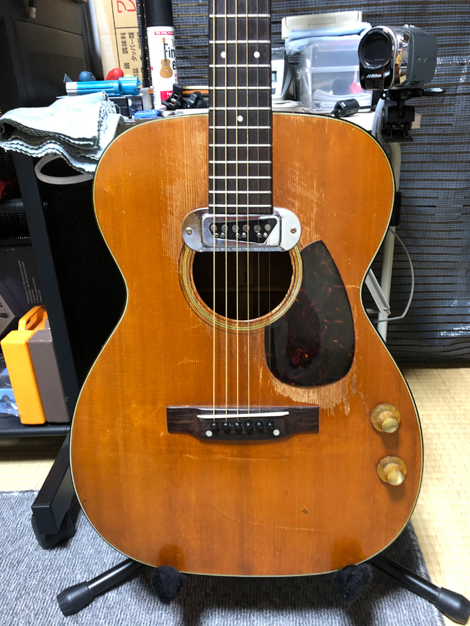 何気なくネットをみていたら、前から気になってたギターが・・・。それも驚くほどの格安価格で。すぐに電話したら「まだある」とのこと。遠くのお店でしたが、翌日伺って即買いしました。表面板は穴が空きそうなくらい削れていたり、ネックは元起きしていたりと、問題がたくさんありますが、所有しているだけで満足な一本です。