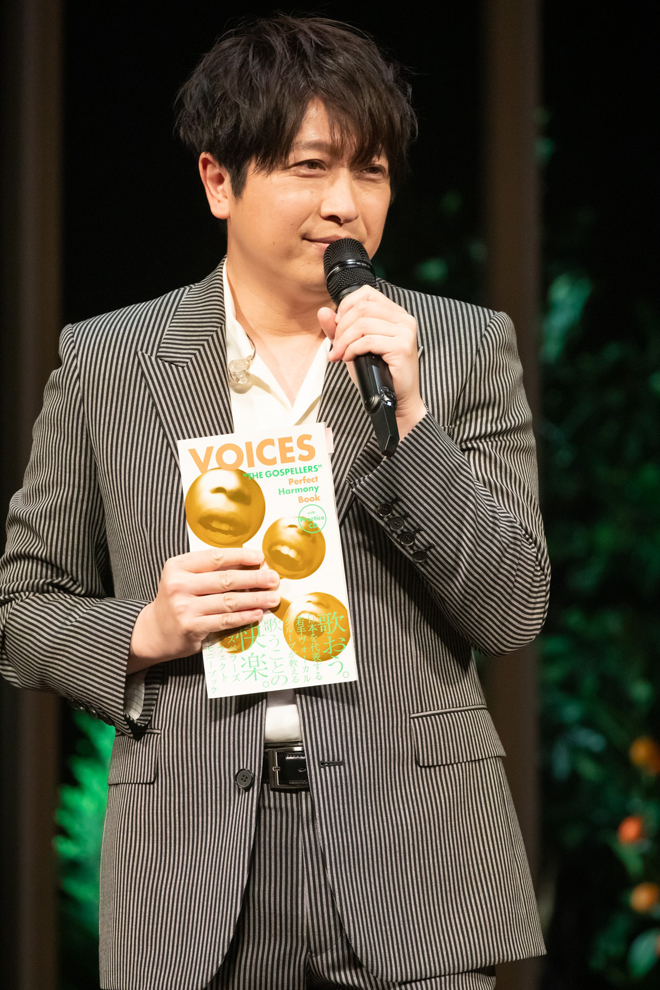 6人でアカペラを歌い上げた後、ゴスペラーズと小野大輔はトークを展開。「最初、ライブを観にきませんか?というお誘いだと思ったが、一緒に歌いませんか?というお誘いでビックリした」とオファーを受けた時の素直な気持ちを告白。今までに声優として演じてきたキャラクターを紹介しながら、実際にその声を披露しゴスペラーズと客席も至福の時間を共有した。その中で「ジョジョの奇妙な冒険」シリーズで演じた空条承太郎の声のベースは北山陽一の低い声だった、と語りゴスペラーズも驚愕した。
