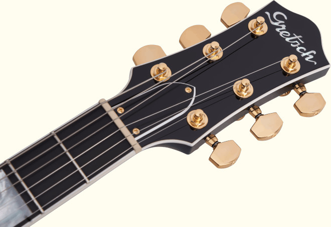 本モデルには新開発のGretsch Broad’Tron BT65ピックアップが搭載。ピックアップデザイナーの名匠として知られるティム・ショウによって設計されたBT65は、パワフルなミイッドレンジ、伸びやかなロー、そして非常にクリアでありながらスムーズなハイエンドを提供。繊細なサウンドメイキングが可能だ。