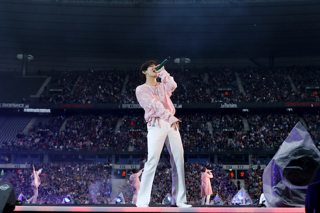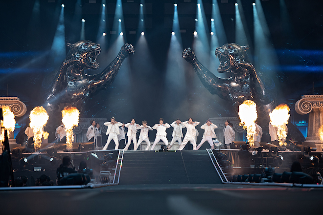 ARMY(BTSのファンの総称)たちに向けて制作された楽曲「Magic Shop」では、会場中が紫の光に包まれるなか、「So show me」というメンバーからの投げかけに会場中のARMYが「I’ll show you」と応え、美しいコール&レスポンスが響き渡る。ライブ終盤には鬼気迫るパフォーマンスがクールな「Tear」、これまで歩んできた道のりと掴んできた成功から自信や誇りを歌詞に込めた「MIC Drop」と、彼らのカッコよさや力強さが際立つ楽曲を立て続けに披露し、スタジアムには冷める気配のない熱気が渦巻いていた。