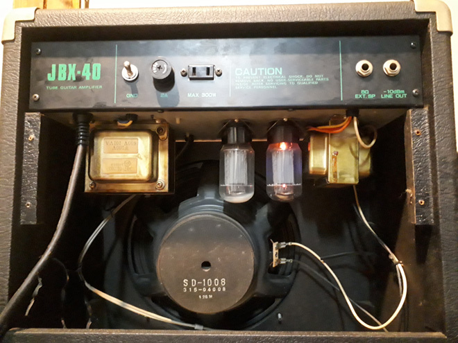 ほんの一歩あのサウンドに近づけるのかなぁ、少しギターがうまくなるのかなぁ、と思いながら75,000円かー。それでもお店のおじさんに値段を聞いてみたら57,000円というのです。間違ってる?値引きしてくれてる?音出ししたら「真空管アンプ」です。うぶな未成年が「真空管」に酔いしれています。夢にまでみた「真空管アンプ」が買えない値段ではなく、しかも今ここに存在。この時点で舞い上がってマーシャルも日本ハモンドも一緒くた。しかも定価販売でも当たり前の当時にまぁまぁ安いし。値段の理由は聞いたらあかん気がする、と悪い私がでてきてエイヤーで買ったよ。(おじさんありがとう!)